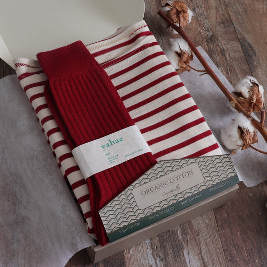 ボーダー長袖Tシャツと靴下のギフトセット(Red)