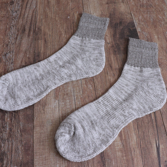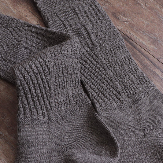 定番的なデザインのラインナップですが、天然素材の持つ色味や肌触りを残しているのでどの靴下もファッションを楽しめる存在感のあるデザインです。