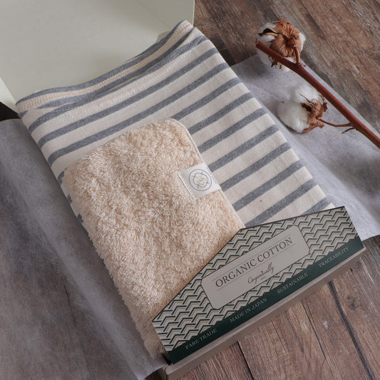 ボーダーTシャツとハンドタオルのギフトセット(Gray)