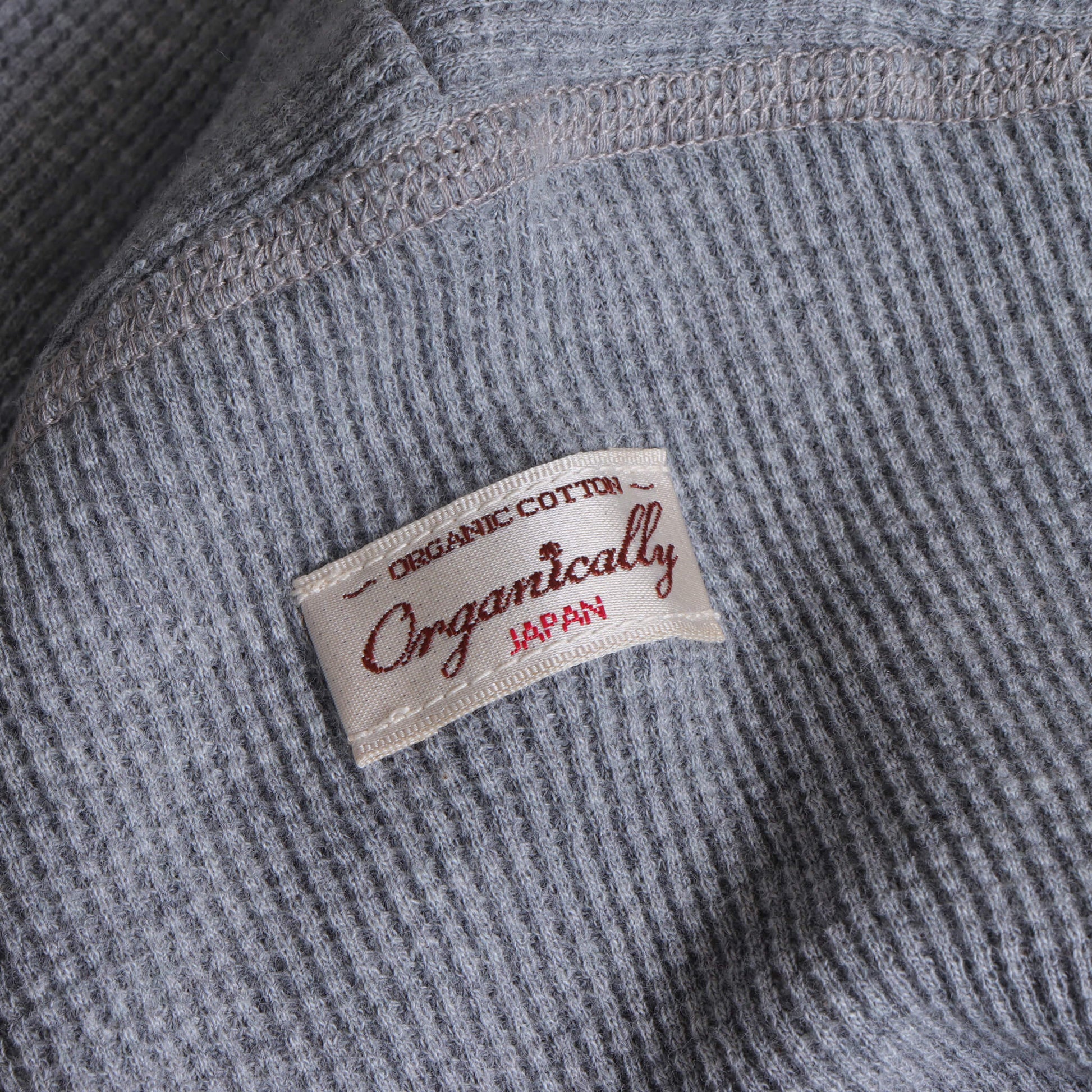 Waffle fabric is enveloping and has the stretchiness of knitwear, so the organic cotton waffle fabric gently envelops the body. In addition, although it feels thick, it is also lighter than it looks because of its uneven surface.