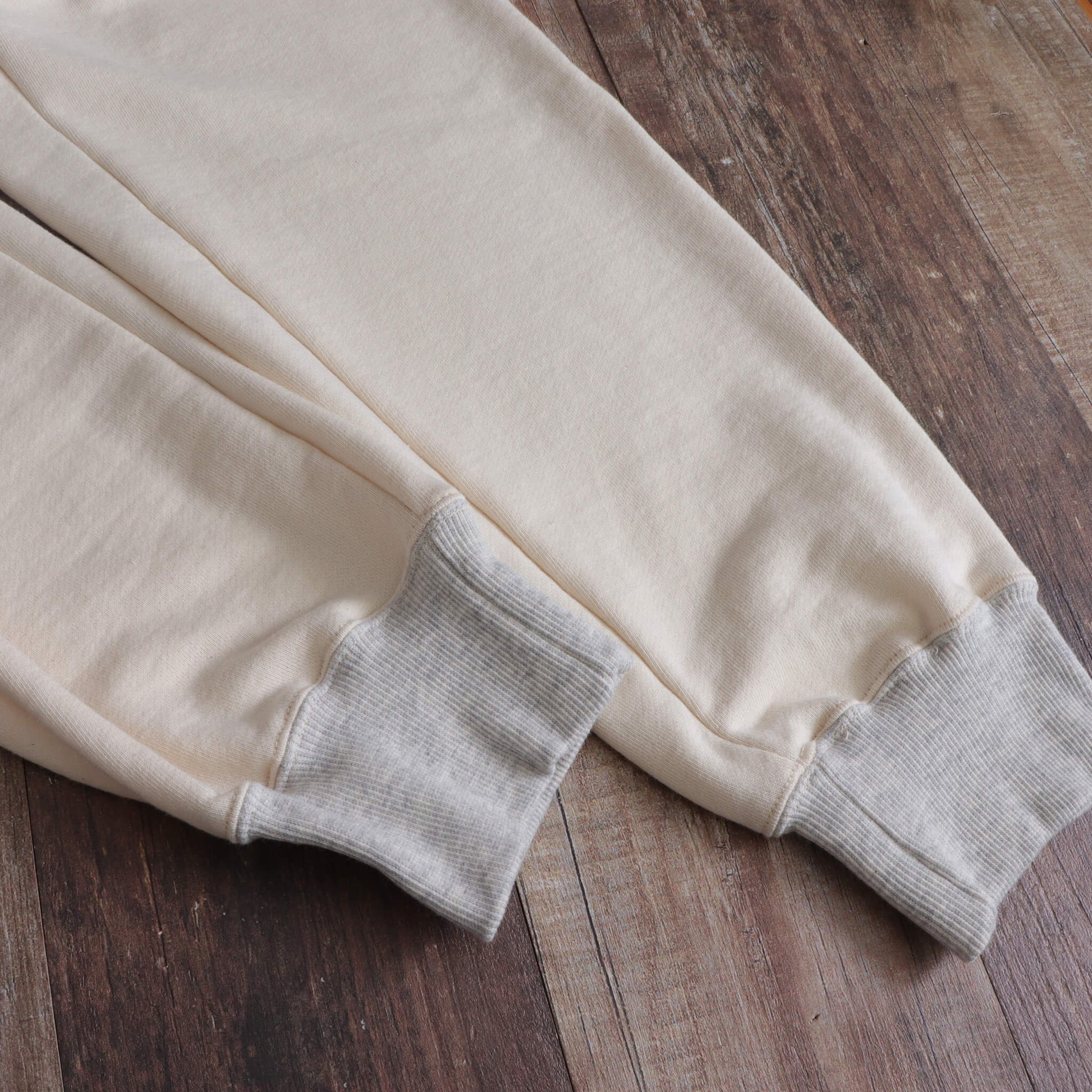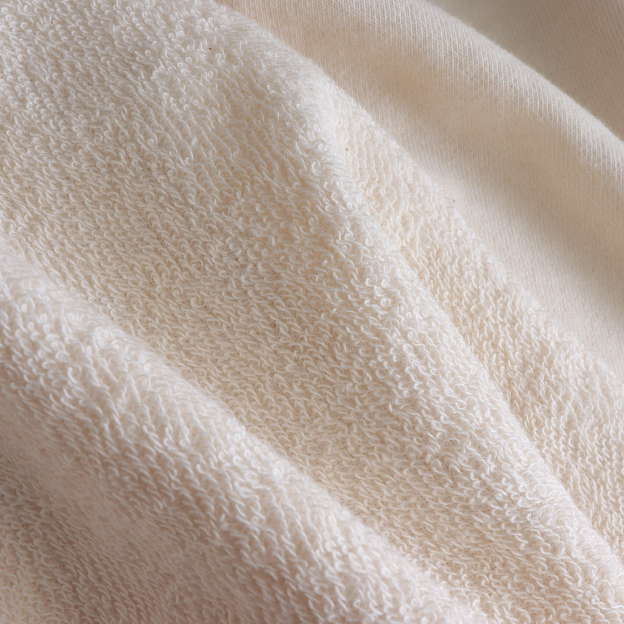 スウェットでも度々洗ううちにゴアゴアとした肌触りになってくることがあります。オーガニックコットンのスウェット生地は滑らかな柔らかさが維持され、優しく肌を包み込みます。大事な睡眠時間が充実したものになるでしょう。