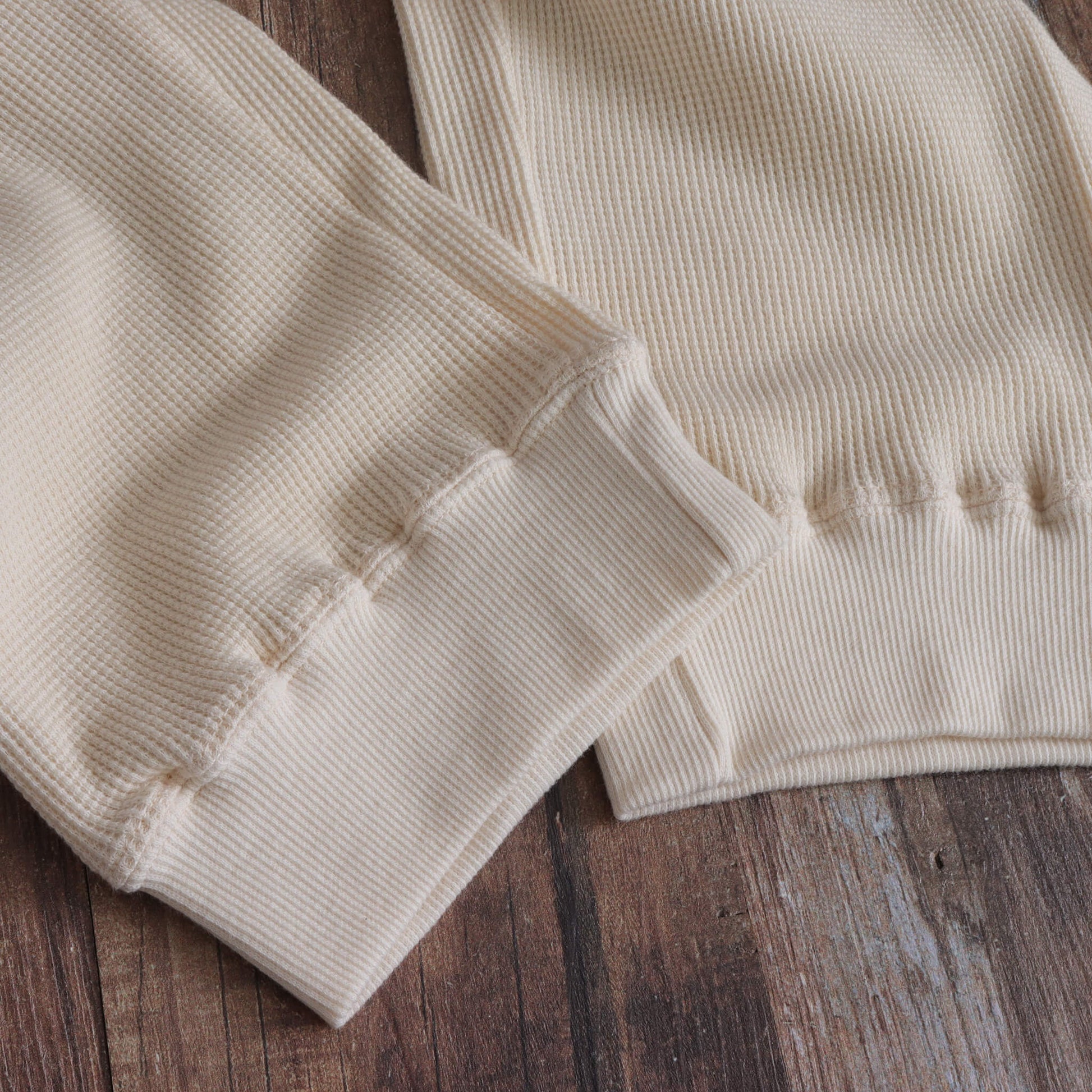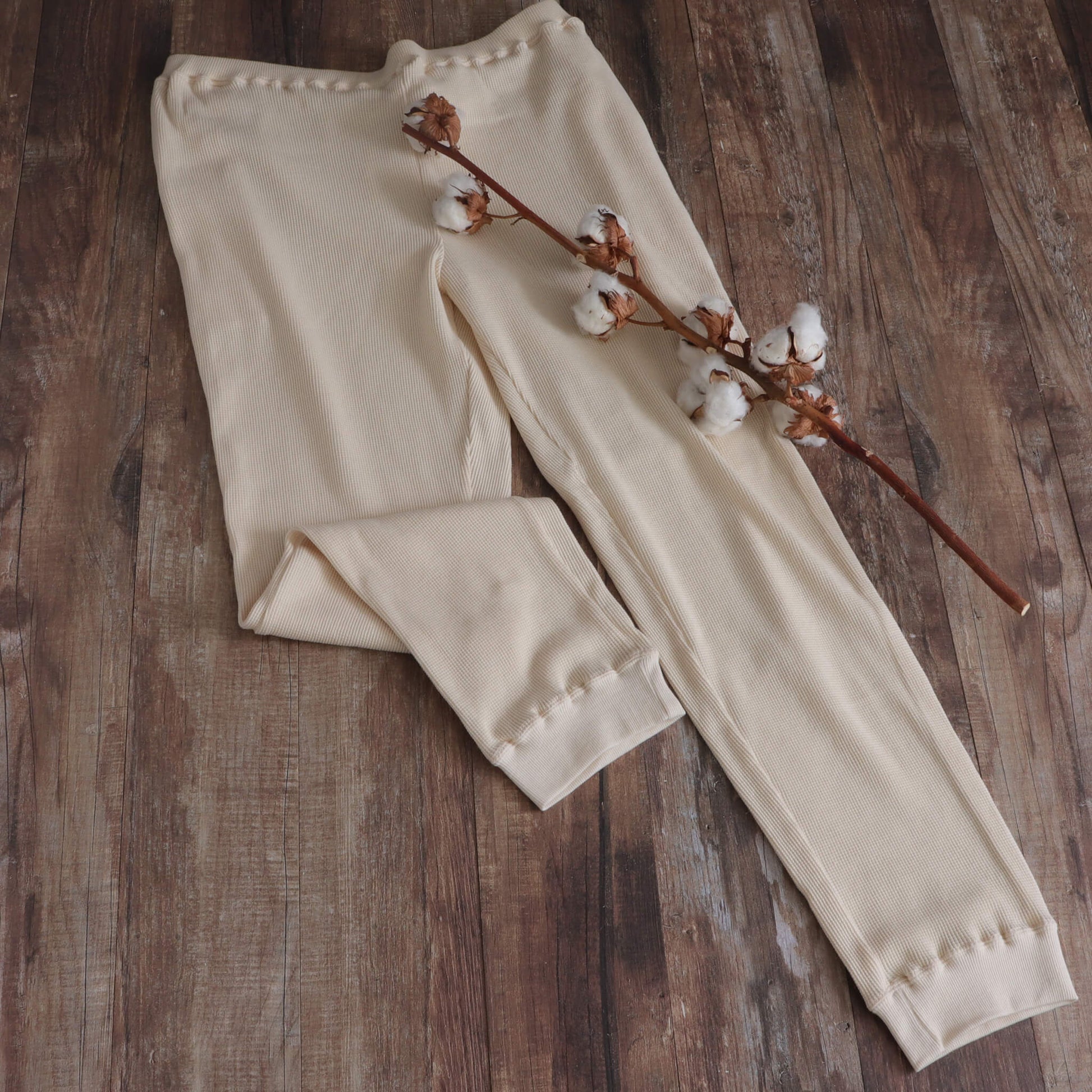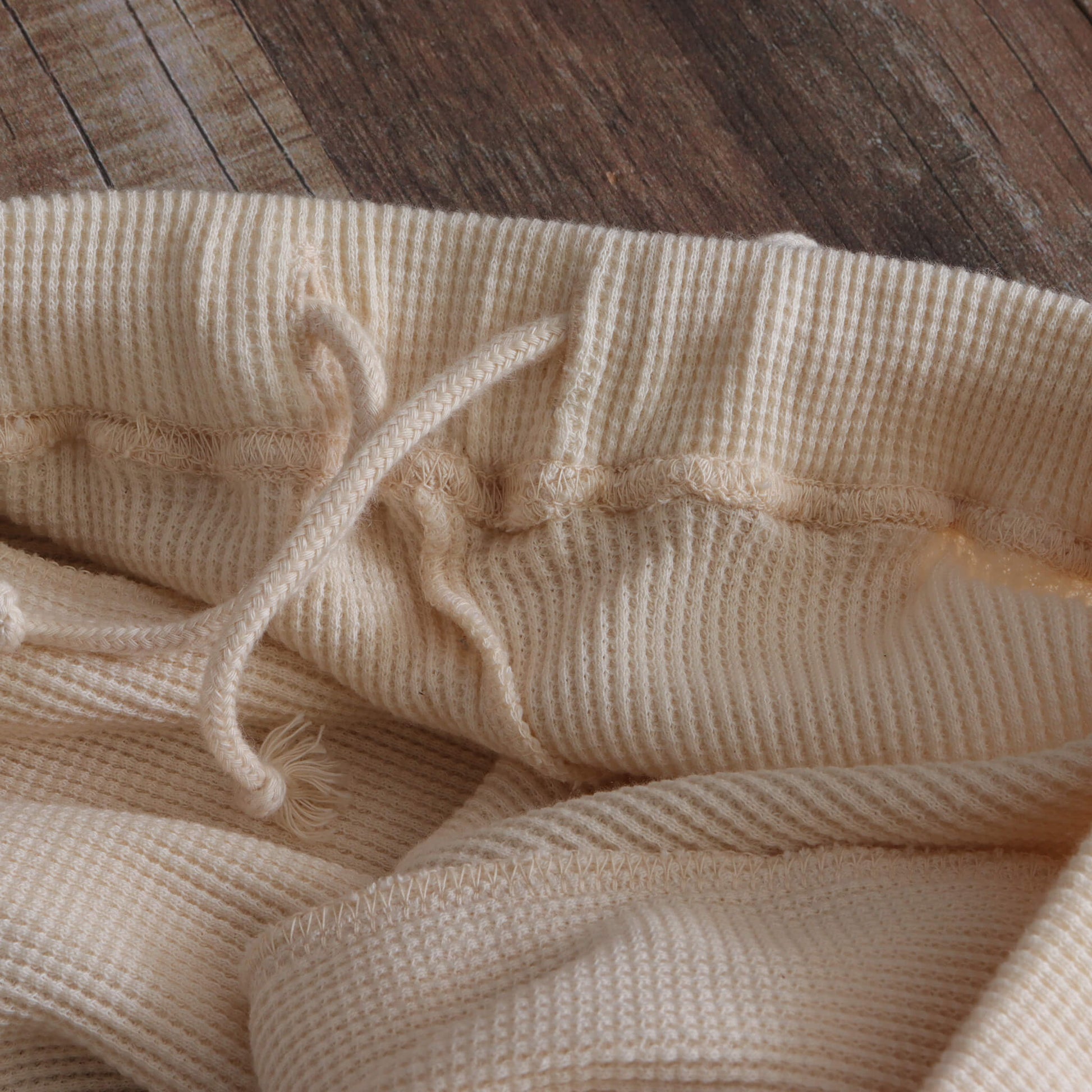 吸収性と通気性、保温性に優れた凹凸のあるワッフル生地です。軽く優しく下半身の冷えや汗から守ります。