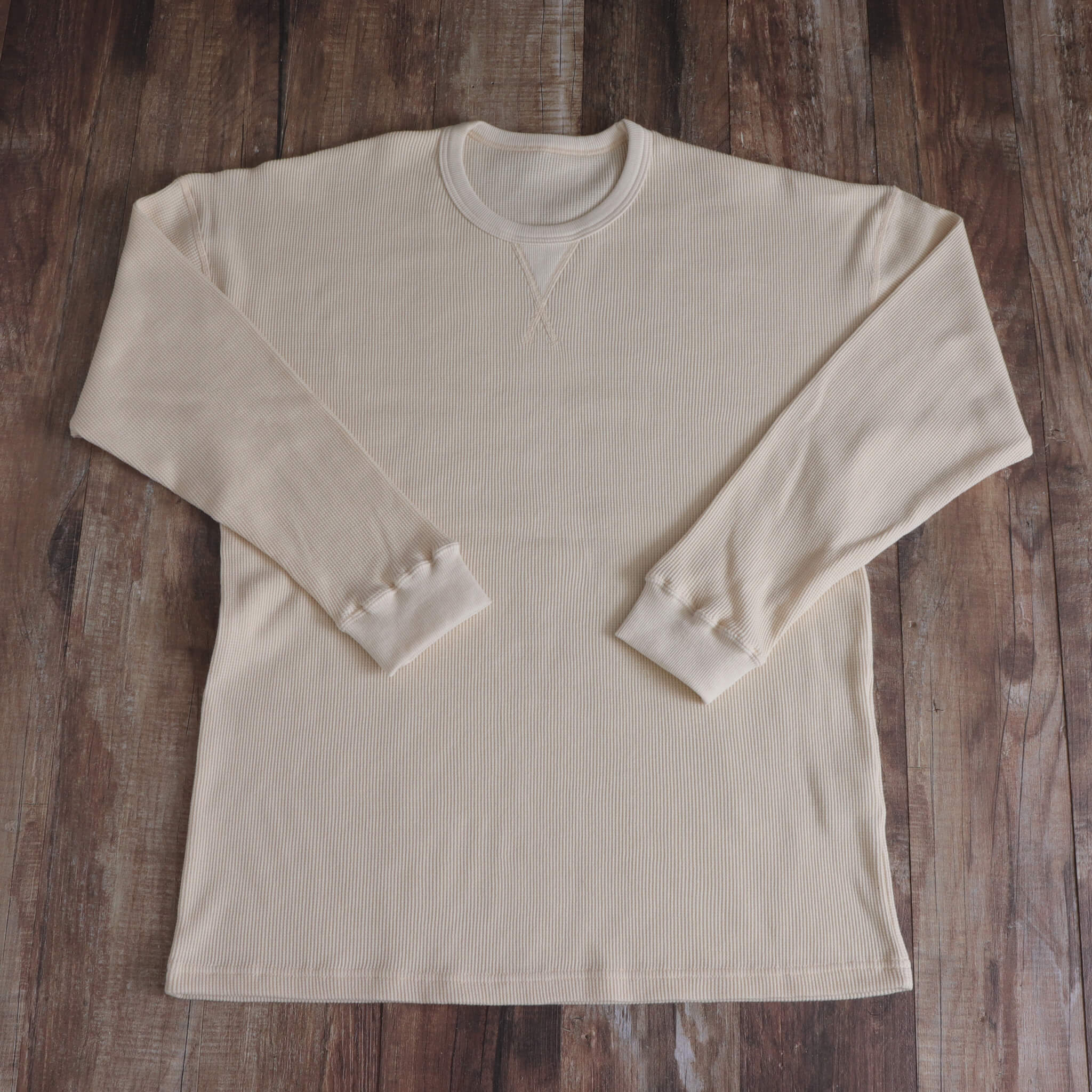 ワッフル生地は包み込むようでニットのような伸縮性もあるので、オーガニックコットンのワッフル生地はより優しく身体を包みます。また、厚みを感じますが凹凸があるため見た目以上に軽いのも良い特徴です。